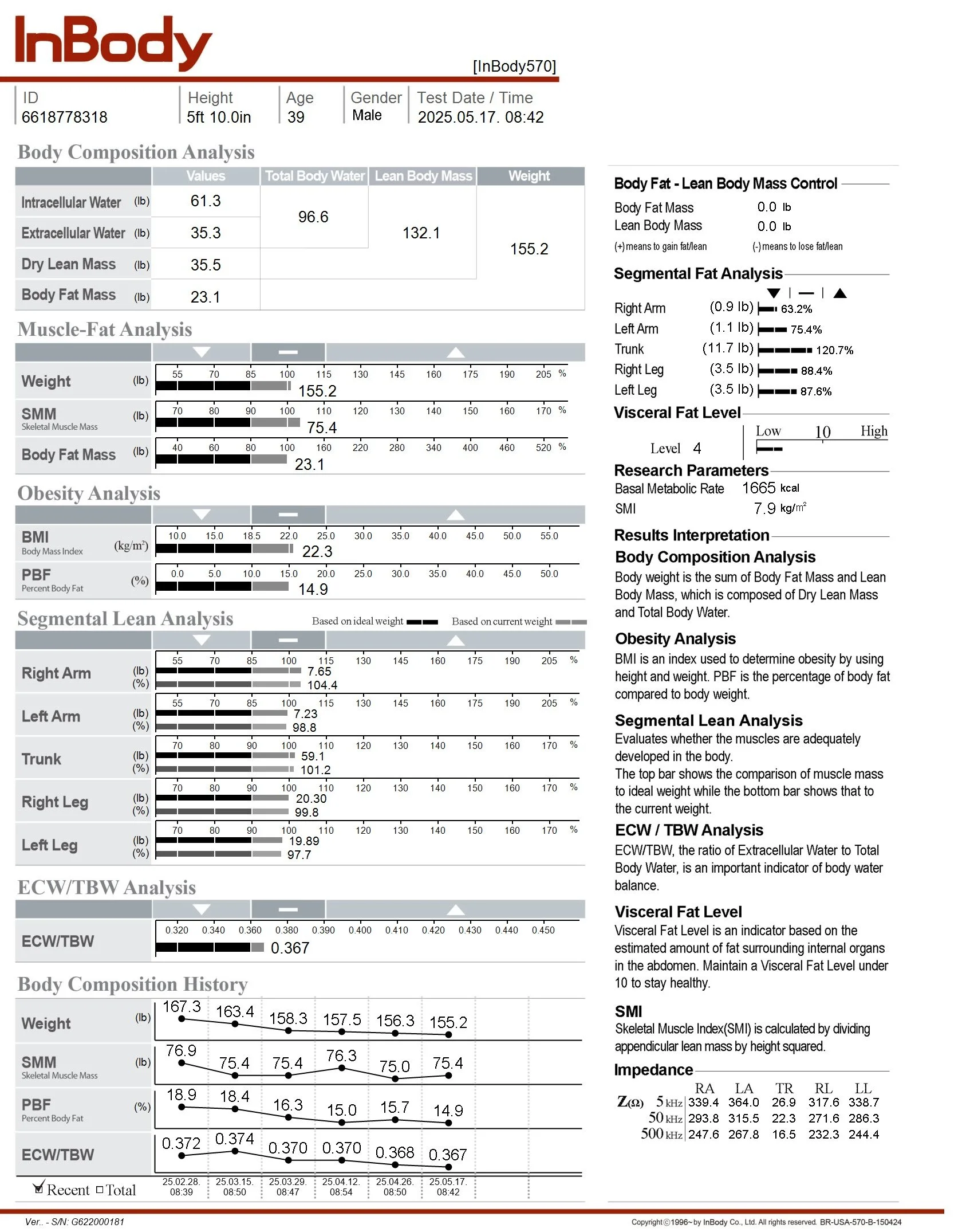 Skeletal Muscle Mass: 56.0 lbs ➝ 57.1 lbs