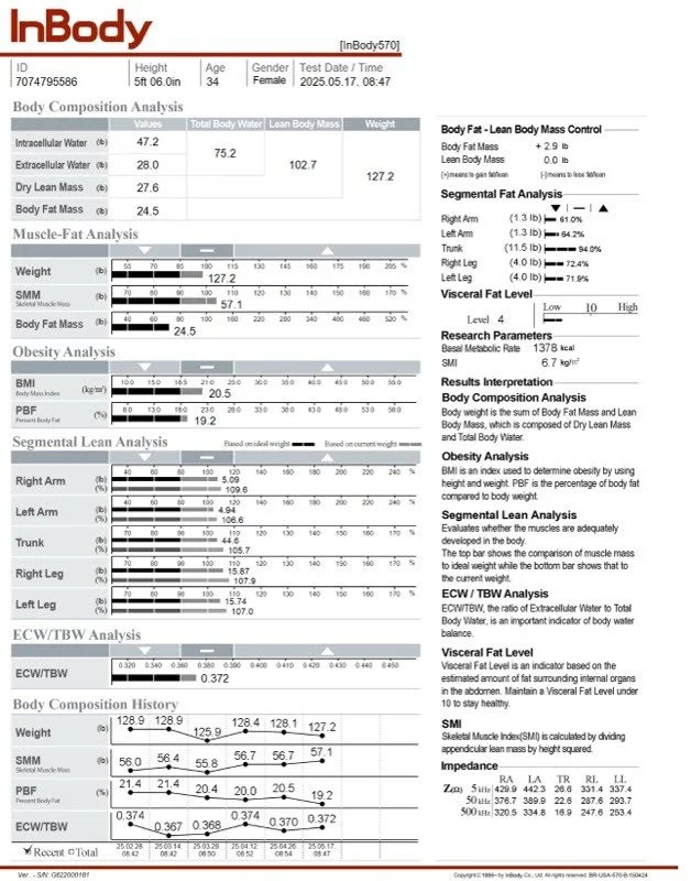 Skeletal Muscle Mass: 56.0 lbs ➝ 57.1 lbs